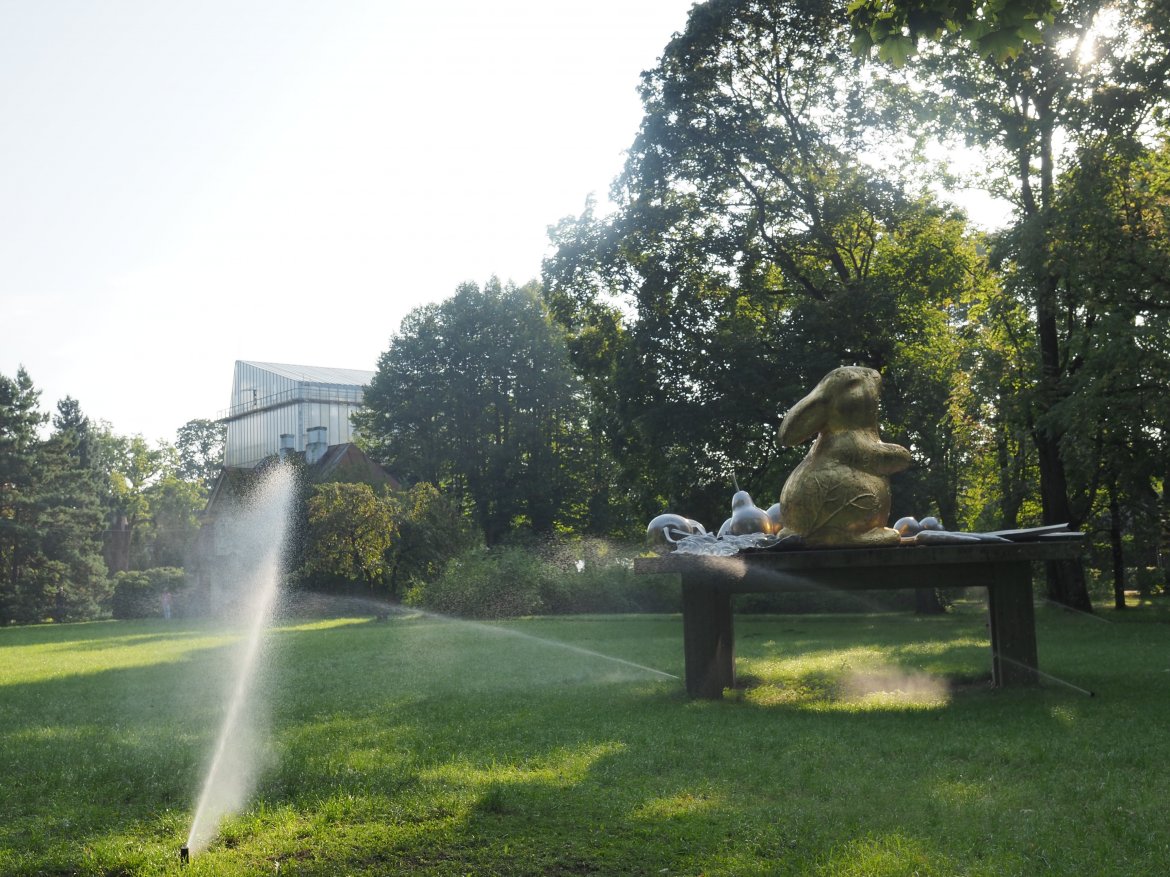 Laikmetīgās mākslas izstādē “Gaisma kabeļa galā”. Foto: Ieva Makare, LETA